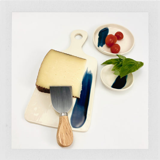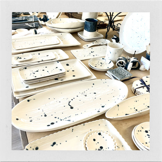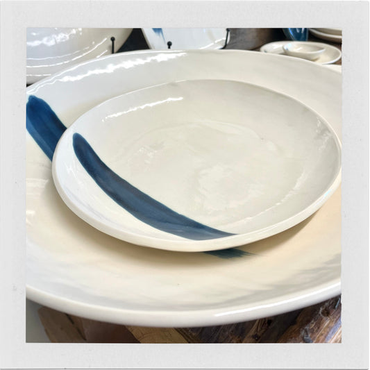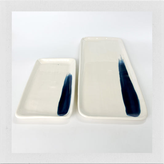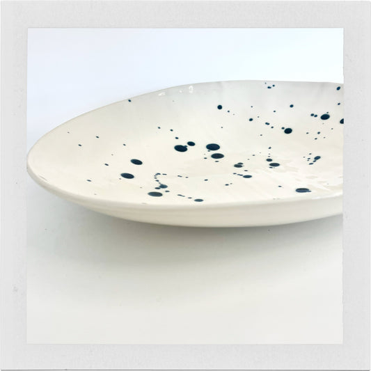 Large Oval Serving Tray - Contemporary Blue Splatter design