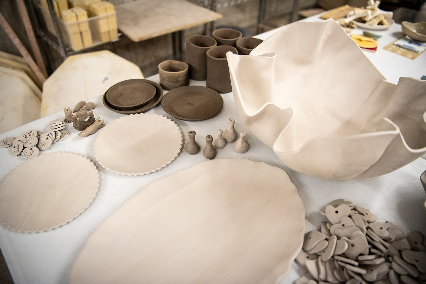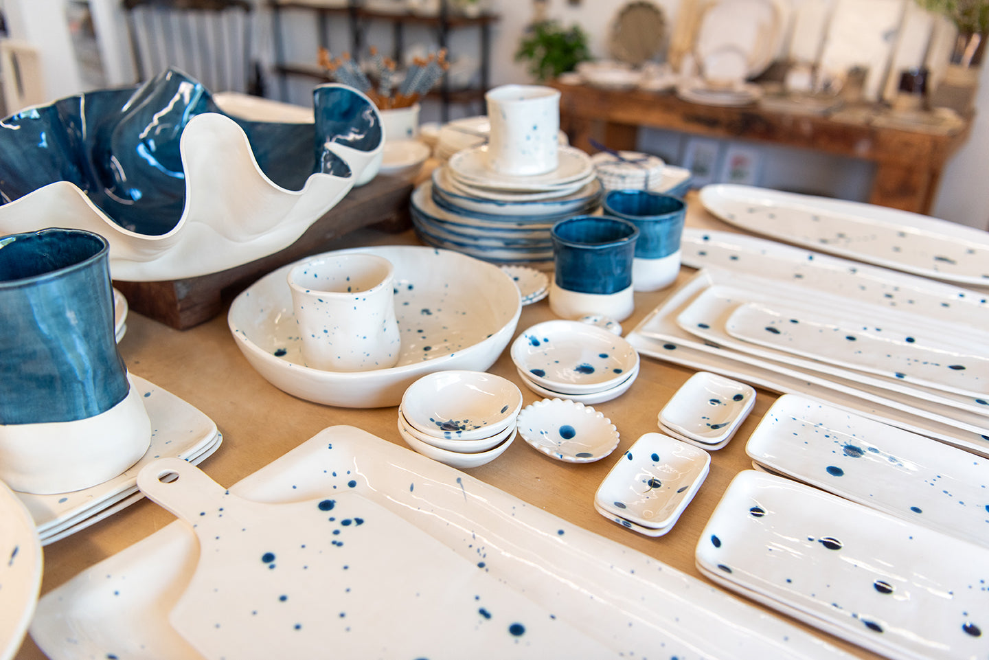We love to create custom pieces for weddings, showers or home dinnerware sets. Meet with Michal and discuss custom orders inspired by her work and style. Our store showcases all of our pottery designs as well as the many different sizes, styles and colors available. Michal will work with you to create sets of plates, mugs, vases, or anything fit for your needs. We can also personalize pieces by adding initials or short messages using block-print clay stamps.